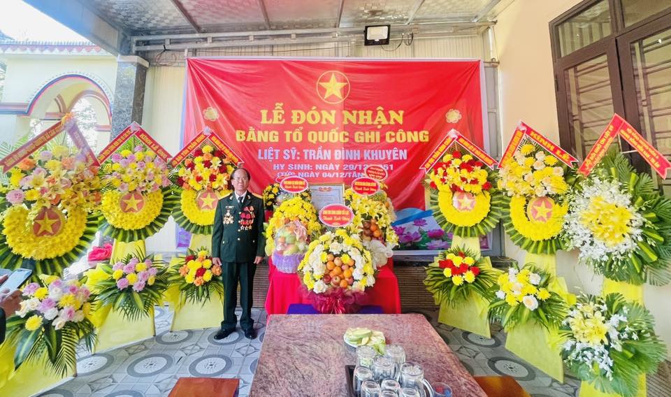Tại buổi lễ, đồng chí Đại tá Nguyễn Hà – Phó Chủ nhiệm Chính trị Bộ CHQS tỉnh Hà Tĩnh đã công bố Quyết định của Thủ tướng Chính phủ về việc cấp Bằng “Tổ quốc ghi công” đối với Liệt sĩ Trần Đình Khuyên. Tiếp đó, đại diện lãnh đạo Bộ CHQS tỉnh trao Bằng “Tổ quốc ghi công” cho thân nhân gia đình liệt sĩ trong không khí trang nghiêm, xúc động.