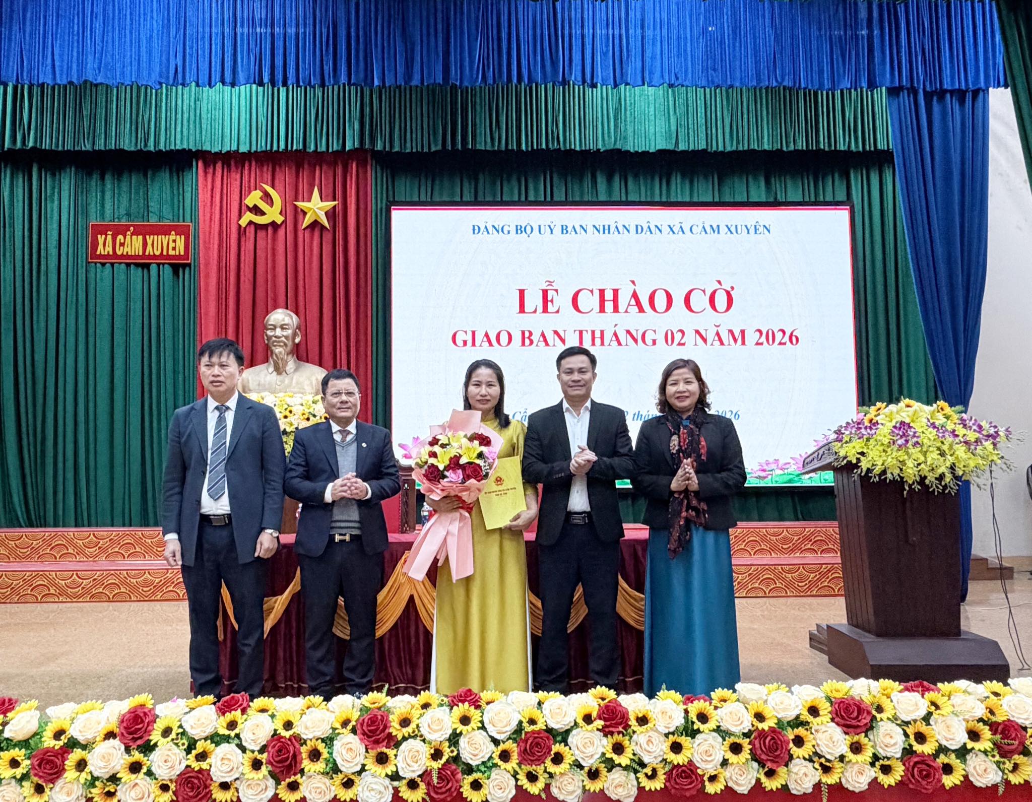 Ngay sau lễ chào cờ, đã tổ chức công bố Quyết định số 116/QĐ - UBND xã Cẩm Xuyên về việc tiếp nhận, bố trí bà Phan Thị Linh đến nhận công tác tại Phòng Kinh tế, Ủy ban nhân dân xã Cẩm Xuyên kể từ ngày 01/02/2026. Việc tiếp nhận, bố trí viên chức nhằm kiện toàn tổ chức bộ máy, đáp ứng yêu cầu nhiệm vụ trong tình hình mới.