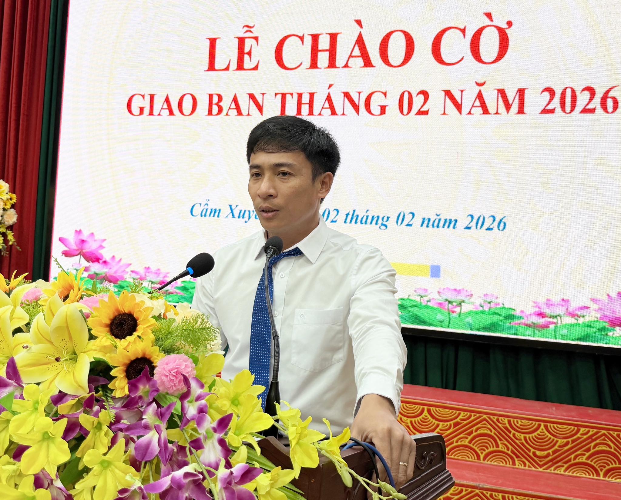 Sáng ngày 2/2/2026, Đảng bộ Uỷ ban nhân dân xã Cẩm Xuyên tổ chức Lễ chào cờ và giao ban tháng 02 năm 2026 đồng thời công bố Quyết định về việc tiếp nhận, bố trí công chức theo quy định. Tham dự có đồng chí Uỷ viên BTV Đảng uỷ; Trưởng, phó các phòng ban, chuyên môn; cùng toàn thể cán bộ, công chức, viên chức và người lao động tham dự.