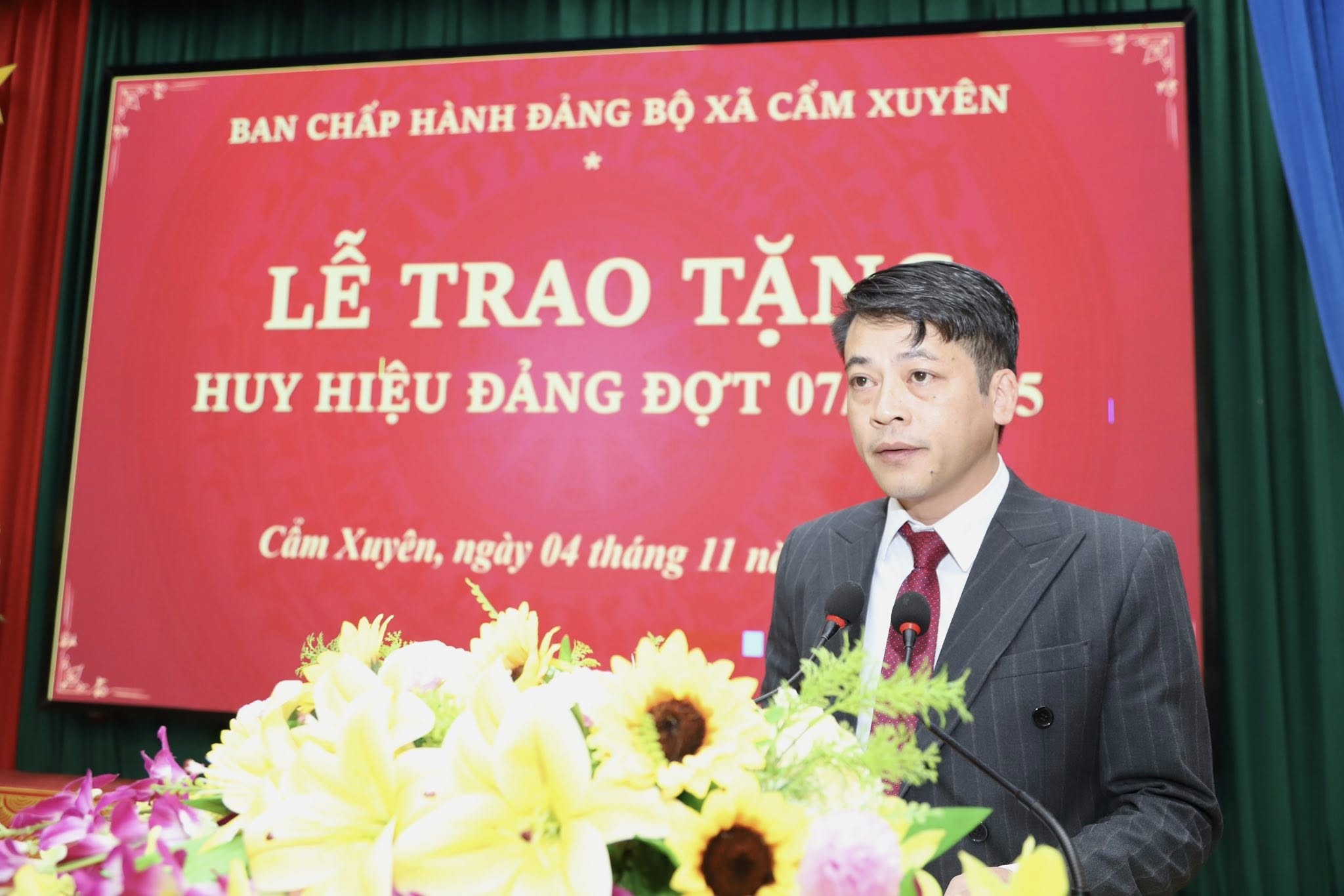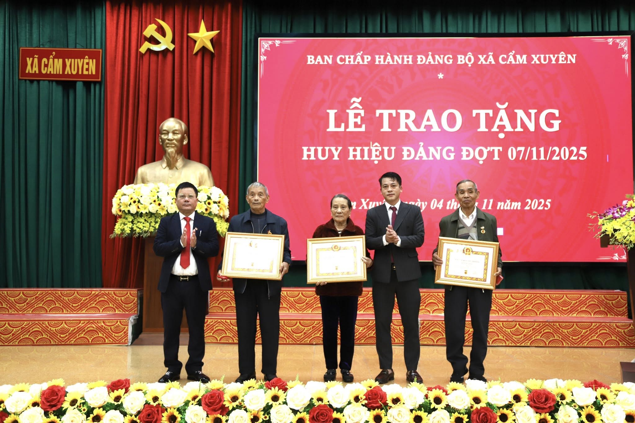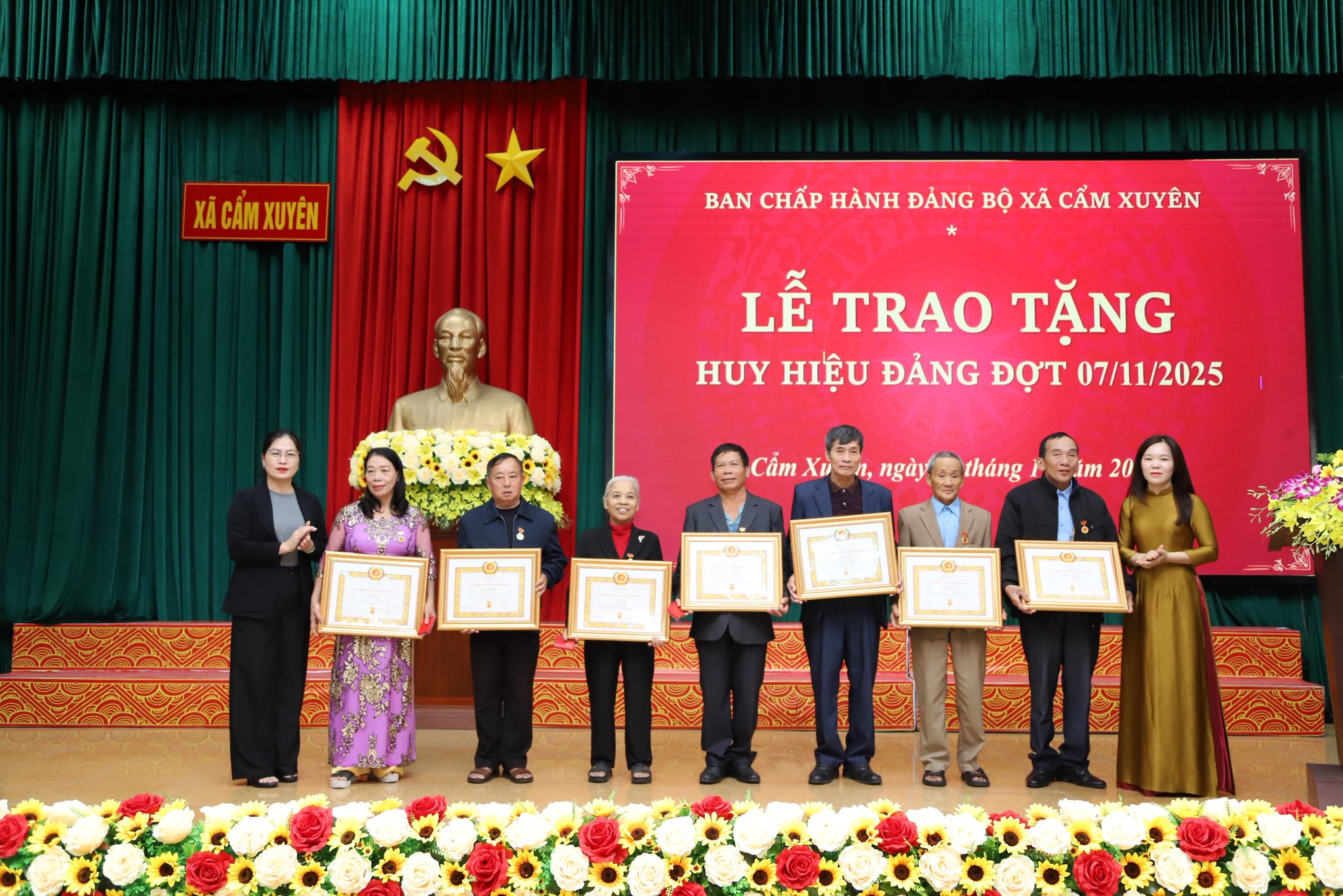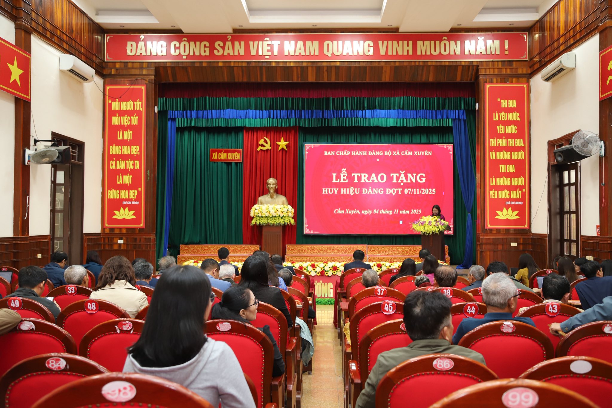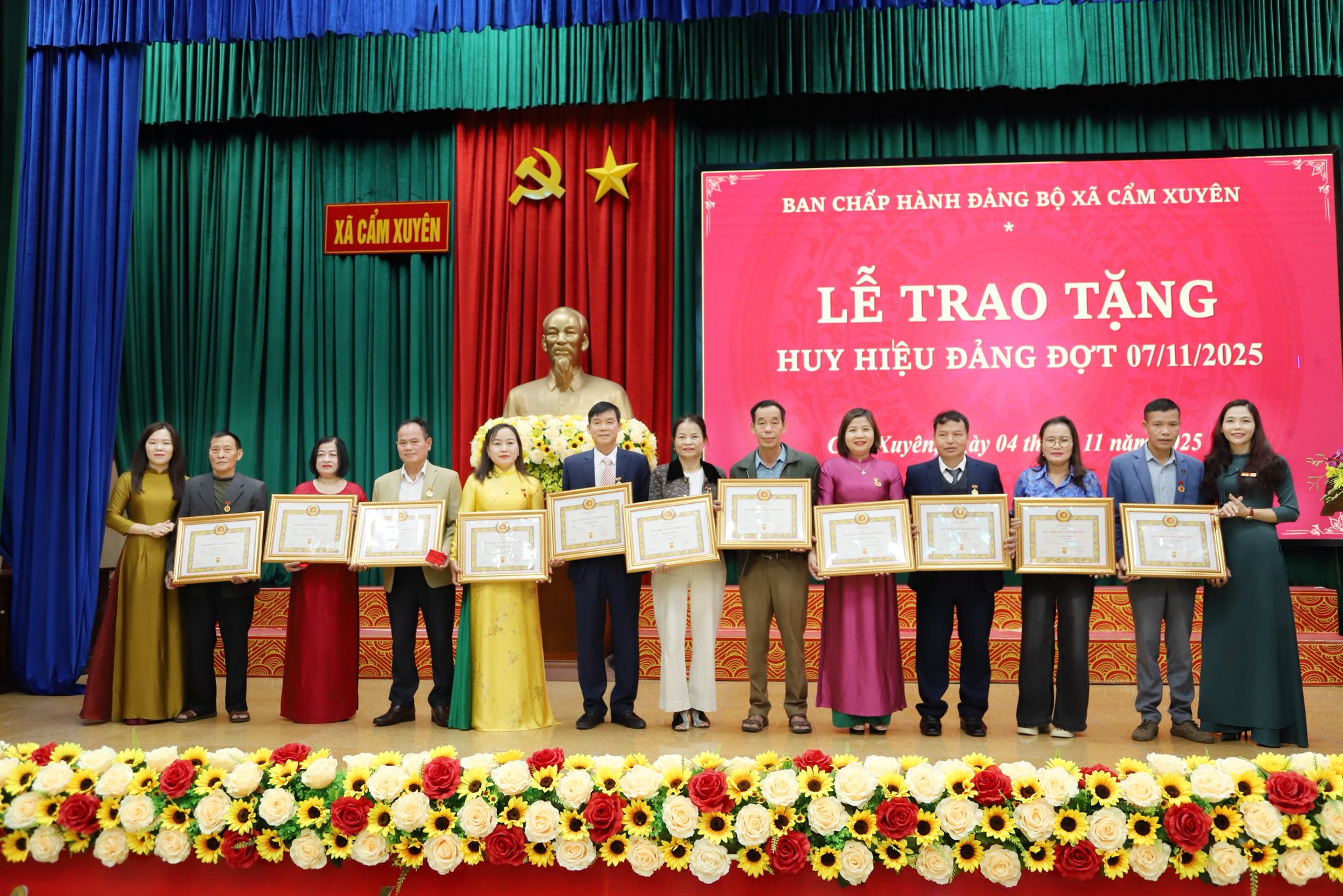Trong đợt này, Đảng bộ xã Cẩm Xuyên vinh dự có 31 đảng viên được trao tặng Huy hiệu Đảng gồm: 3 đồng chí 60 năm tuổi Đảng; 1 đồng chí 55 năm tuổi Đảng; 4 đồng chí 50 năm tuổi Đảng; 8 đồng chí 45 năm tuổi Đảng; 3 đồng chí 40 năm tuổi Đảng và 12 đồng chí 30 năm tuổi Đảng.