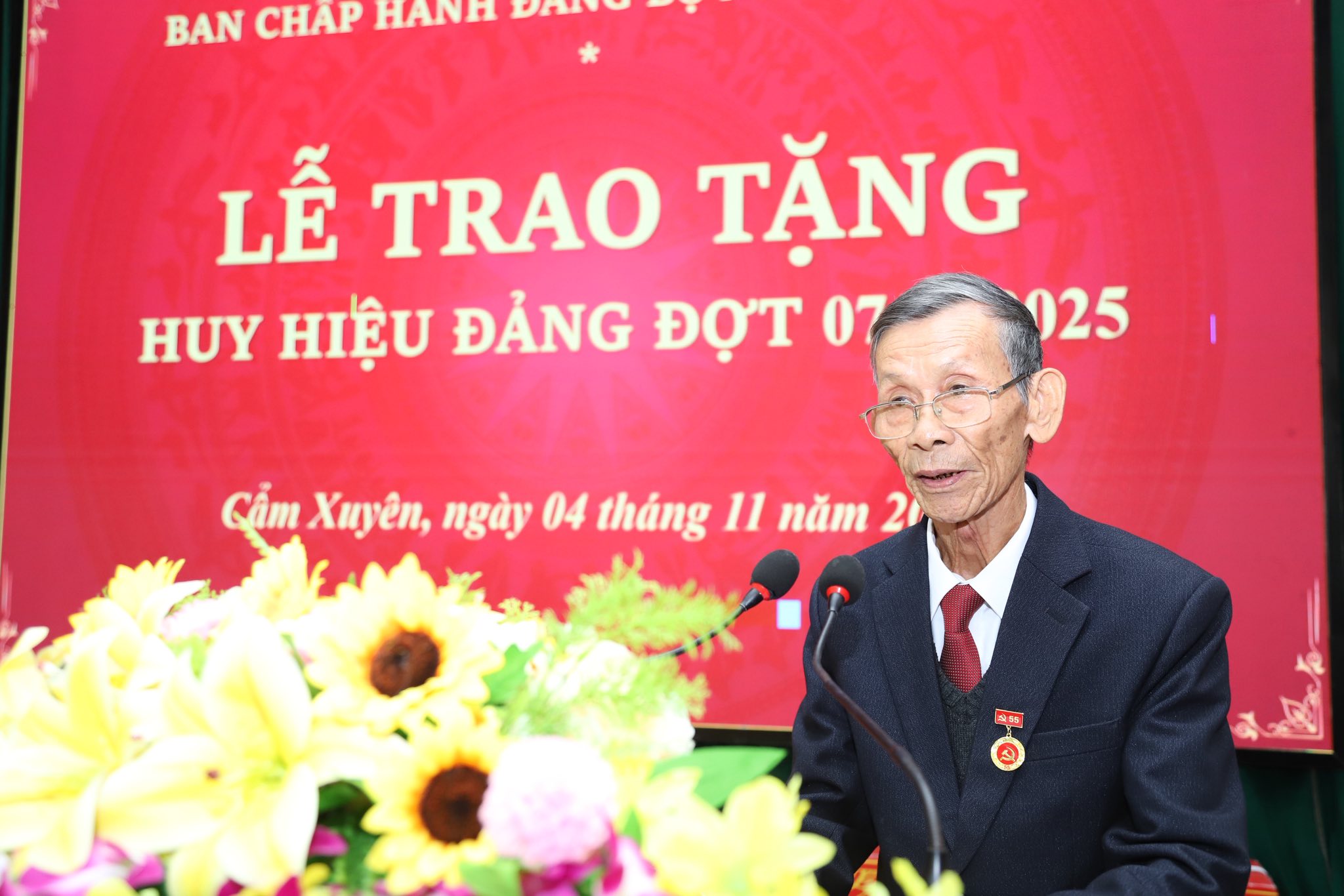 Các đảng viên vinh dự được nhận Huy hiệu Đảng đã bày tỏ niềm xúc động trước sự quan tâm, ghi nhận của Đảng đối với quá trình phấn đấu và trưởng thành của bản thân. Đồng thời, hứa sẽ tiếp tục nêu cao vai trò tiền phong, gương mẫu; tăng cường giáo dục đảng viên trẻ, vận động gia đình, Nhân dân thực hiện tốt chủ trương, đường lối của Đảng, chính sách, pháp luật của Nhà nước, góp phần chung tay xây dựng quê hương xã Cẩm Xuyên ngày càng phát triển, giàu đẹp.