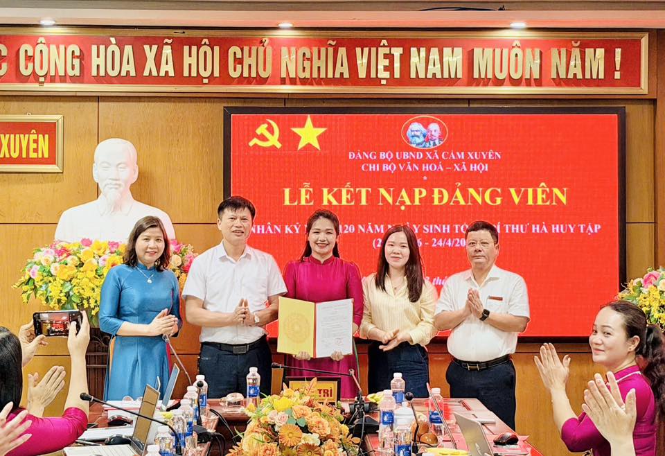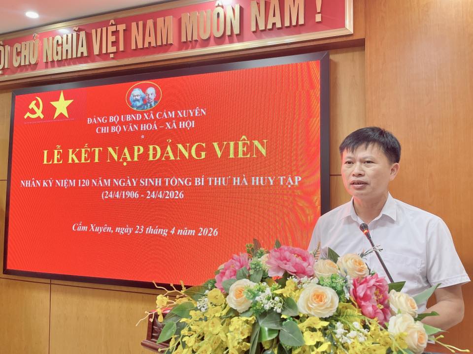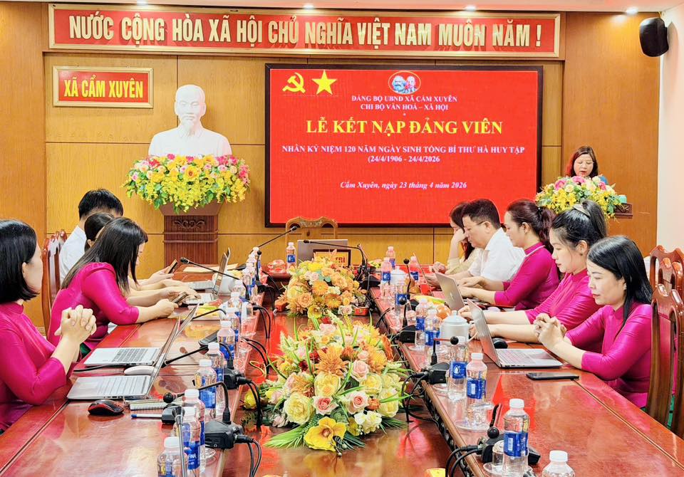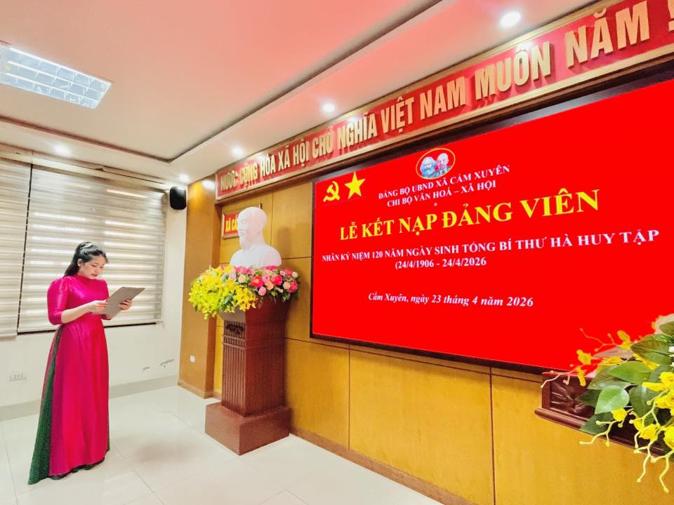 Hòa trong không khí thi đua sôi nổi chào mừng kỷ niệm 120 năm Ngày sinh Tổng Bí thư Hà Huy Tập (24/4/1906 – 24/4/2026), Chi bộ Văn hóa – Xã hội thuộc Đảng bộ UBND xã Cẩm Xuyên đã long trọng tổ chức Lễ kết nạp Đảng viên mới cho quần chúng ưu tú.