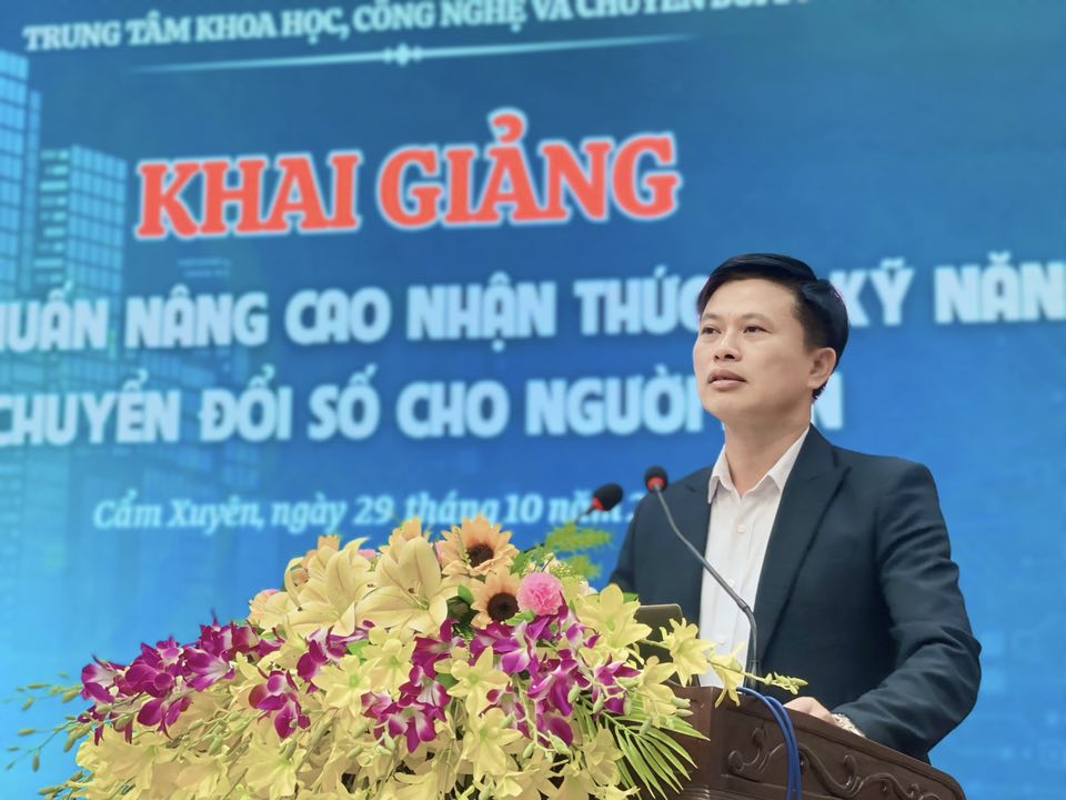 Thực hiện nhiệm vụ dịch vụ sự nghiệp công về việc đào tạo, tập huấn năm 2025, Trung tâm Khoa học, Công nghệ và Chuyển đổi số Hà Tĩnh phối hợp với UBND xã Cẩm Xuyên tổ chức Lớp tập huấn nâng cao nhận thức, kỹ năng chuyển đổi số cho Người dân và Tổ chuyển đối số cộng đồng trên địa bàn xã.