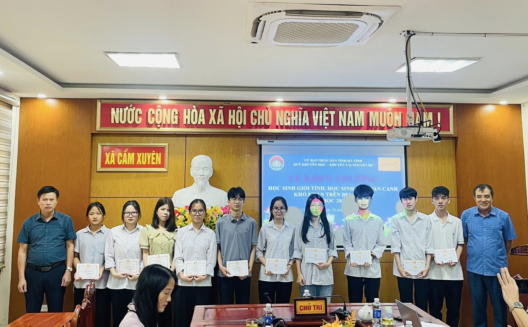 Thực hiện Công văn số 86/CV-HKH của Hội khuyến học tỉnh Hà Tĩnh về việc Khảo sát học sinh có hoàn cảnh đặc biệt khó khăn đạt điểm cao 3 môn xét tuyển vào Đại học và khen thưởng học sinh giỏi tỉnh các môn Văn hóa năm học 2024-2025, sáng ngày 20/8/2025, Hội Khuyến học tỉnh phối hợp cùng với UBND xã Cẩm Xuyên tổ chức Lễ khen thưởng học sinh giỏi tỉnh, học sinh có hoàn cảnh khó khăn trên địa bàn xã Cẩm Xuyên năm học 2024-2025.