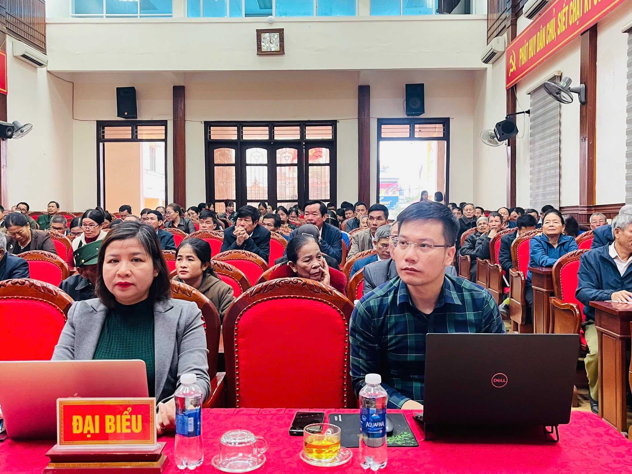 Tham dự hội nghị về đại diện Sở Nội vụ tỉnh Hà Tĩnh có đồng chí Đặng Công Nam – Phó Trưởng phòng Người có công Sở Nội vụ tỉnh Hà Tĩnh; đồng chí Lê Mạnh Thuần – Chuyên viên Sở Nội vụ; ở xã có đồng chí Nguyễn Thị Thủy Nguyệt – Trưởng phòng Văn hóa – Xã hội xã; cán bộ, công chức phụ trách lĩnh vực người có công; cùng các đồng chí bí thư chi bộ, trưởng thôn, trưởng ban công tác Mặt trận và đại diện các tổ chức đoàn thể trên địa bàn xã.