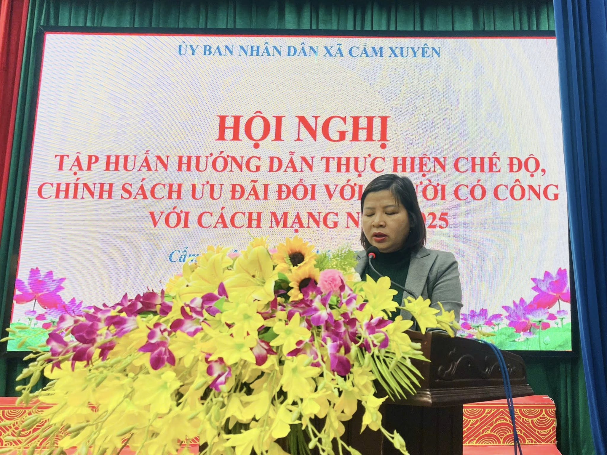Hội nghị tập huấn là hoạt động thiết thực nhằm tăng cường hiệu lực, hiệu quả trong việc triển khai thực hiện các văn bản về chính sách ưu đãi người có công, góp phần thực hiện tốt công tác an sinh xã hội và đạo lý “Uống nước nhớ nguồn” trên địa bàn xã Cẩm Xuyên./.