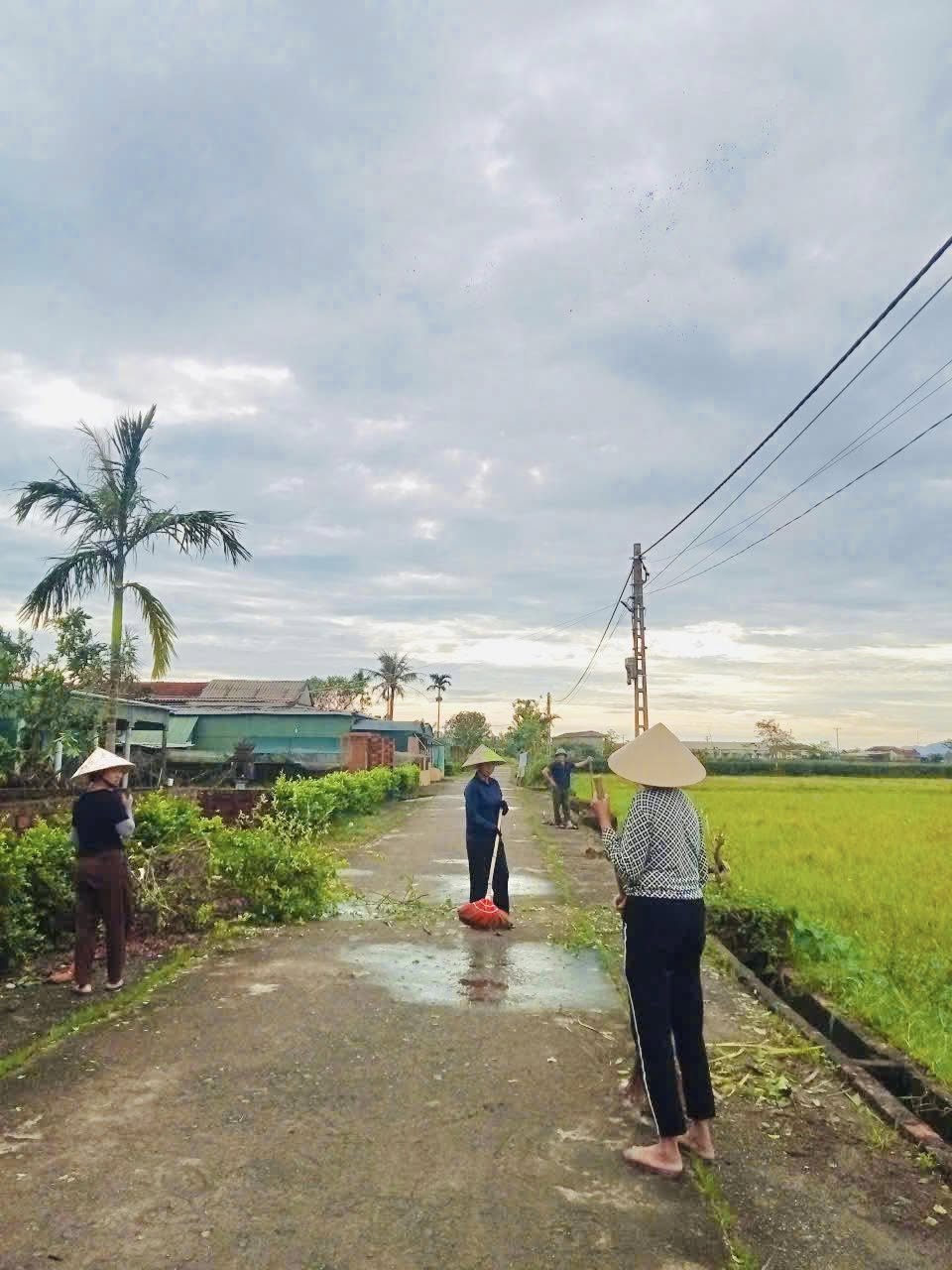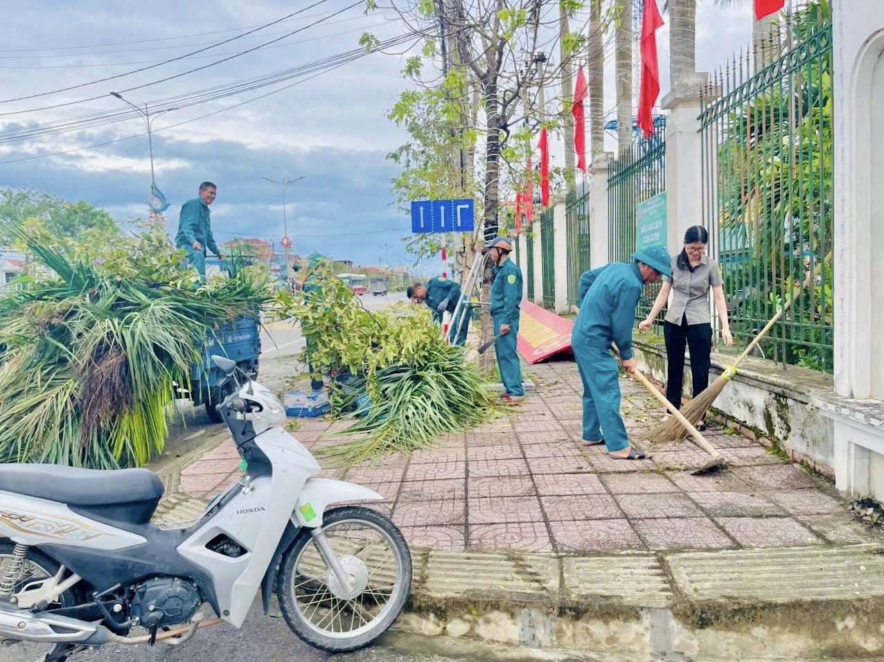 Thực hiện nghiêm Chỉ thị số 66-CT/TU của BTV Tỉnh ủy ngày 29/9/2025 về việc tập trung khắc phục hậu quả bão số 10, toàn xã đã đồng loạt ra quân khắc phục hậu quả thiên tai. Các lực lượng: cán bộ, công chức, viên chức, đoàn viên, hội viên và người dân… cùng chung tay dọn dẹp vệ sinh, khơi thông cống rãnh, dựng lại cây xanh, chỉnh trang cảnh quan.