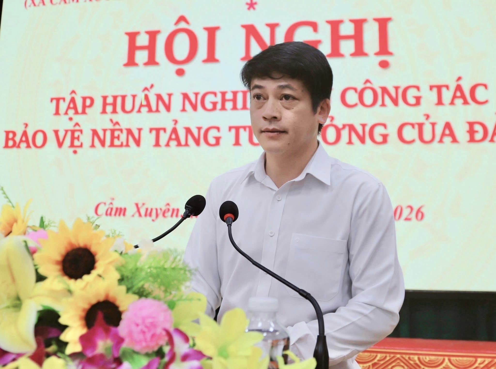 Phát biểu tại hội nghị, đại diện cho các xã phối hợp tổ chức buổi tập huấn, đồng chí Phạm Văn Đan, Phó Bí thư Thường trực Đảng ủy, Trưởng Ban Công tác 35 xã Cẩm Xuyên, trân trọng cảm ơn các đại biểu, giảng viên và học viên tham dự; đồng thời nhấn mạnh, trong bối cảnh không gian mạng phát triển mạnh, công tác bảo vệ nền tảng tư tưởng của Đảng đặt ra nhiều yêu cầu mới, trong khi ở cơ sở vẫn còn những hạn chế về nắm bắt, định hướng dư luận và kỹ năng đấu tranh. Đồng chí đề nghị các học viên nâng cao bản lĩnh chính trị, chủ động tiếp thu, vận dụng hiệu quả kiến thức vào thực tiễn.