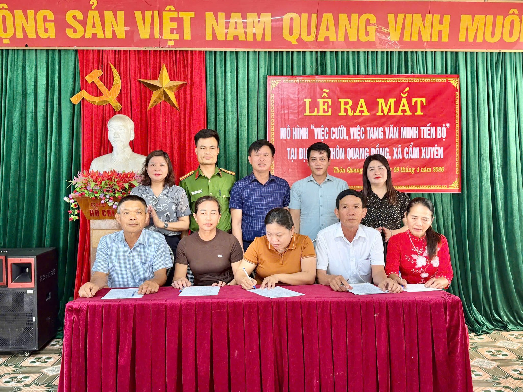 Sáng ngày 08/4/2026, Ủy ban nhân dân xã Cẩm Xuyên, tỉnh Hà Tĩnh đã long trọng tổ chức Lễ ra mắt mô hình “Việc cưới, việc tang văn minh tiến bộ” tại thôn Quang Đồng. Đây là hoạt động có ý nghĩa thiết thực nhằm từng bước xây dựng nếp sống văn hóa mới, góp phần hình thành môi trường văn minh, lành mạnh và đoàn kết trong cộng đồng dân cư.