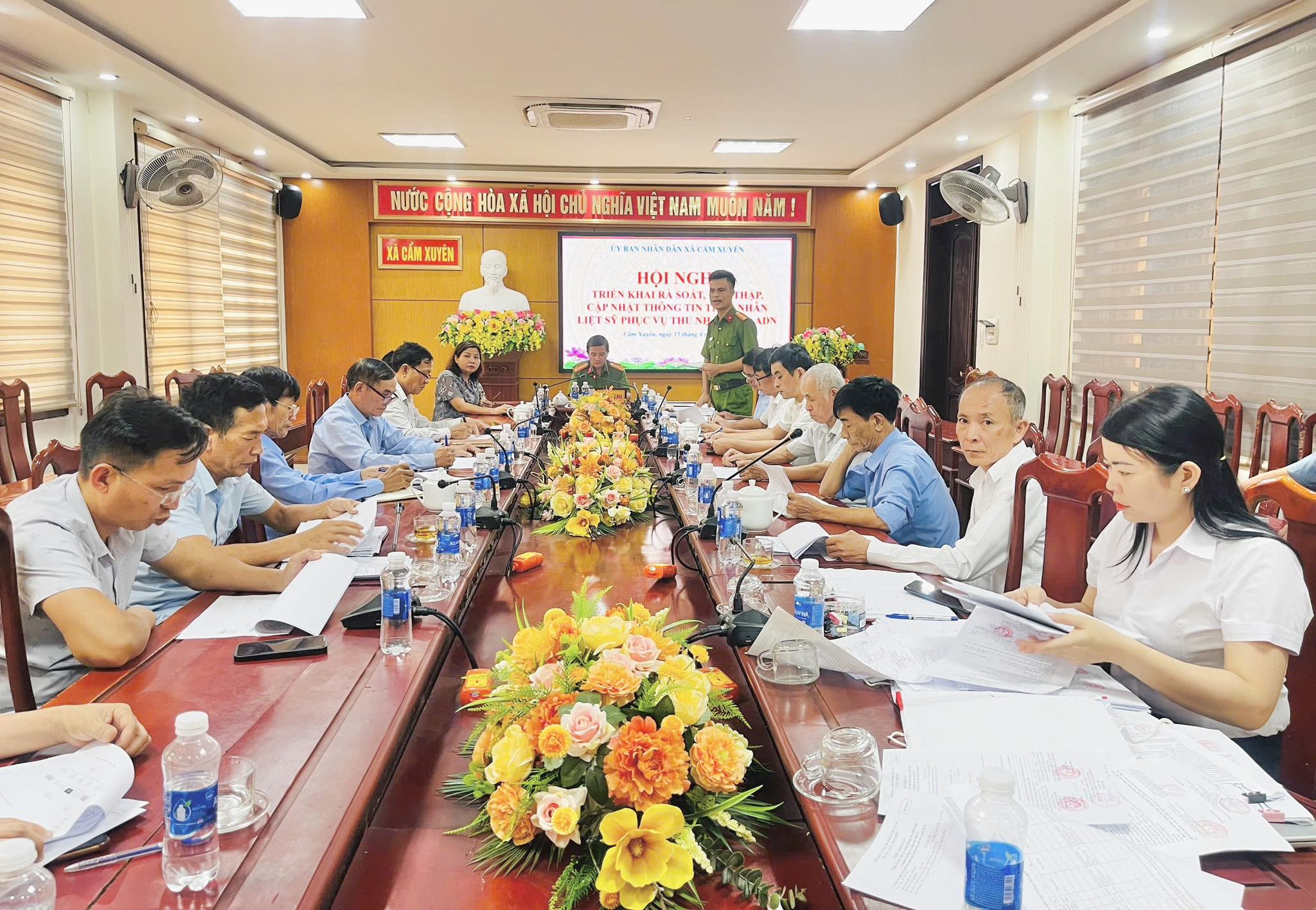Thực hiện Công văn số 709/UBND-VX2 ngày 26/01/2026 của UBND tỉnh Hà Tĩnh về việc triển khai kết luận của đồng chí Tổng Bí thư liên quan đến chính sách đối với người có công với cách mạng, chiều ngày 15/4/2026, UBND xã Cẩm Xuyên đã tổ chức cuộc họp triển khai hướng dẫn rà soát, hoàn thiện thông tin liệt sĩ và thân nhân liệt sĩ trên địa bàn xã.