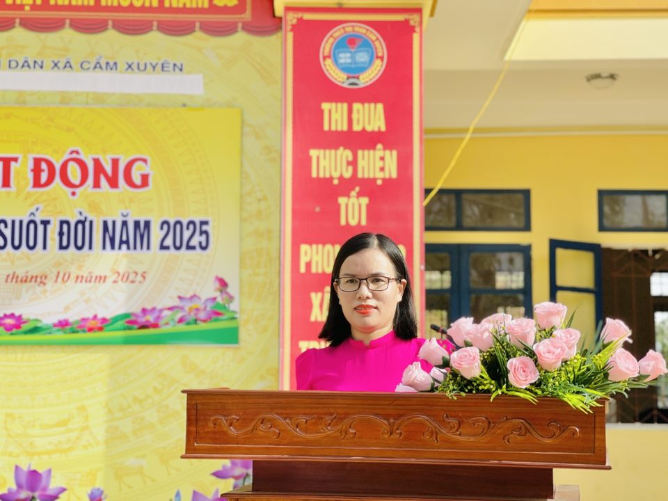 Phát biểu tại buổi lễ, Đồng chí Nguyễn Thị Thủy Nguyệt - Trưởng phòng Văn hóa - Xã hội xã phát biểu: "Với chủ đề : Học để phát triển bản thân, làm chủ tri thức và công nghệ, góp phần xây dựng đất nước hùng cường, thịnh vượng. Học tập suốt đời là yêu cầu tất yếu trong thời đại chuyển đổi số, là chìa khóa để mỗi người tự hoàn thiện và đóng góp cho cộng đồng. Xây dựng xã hội học tập là nhiệm vụ chung của toàn dân – từ nhà trường, gia đình đến các tổ chức, đoàn thể."