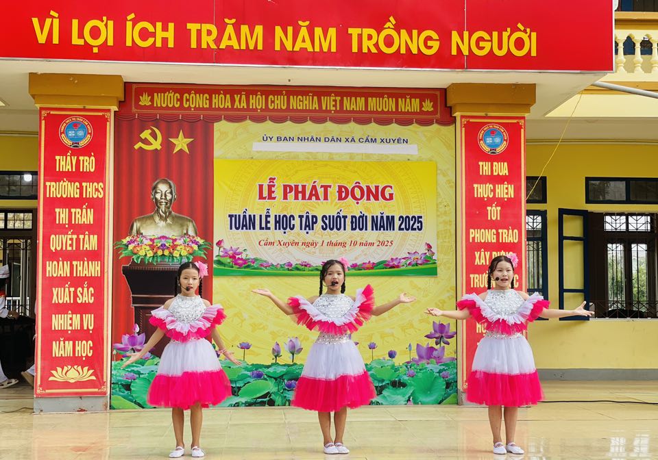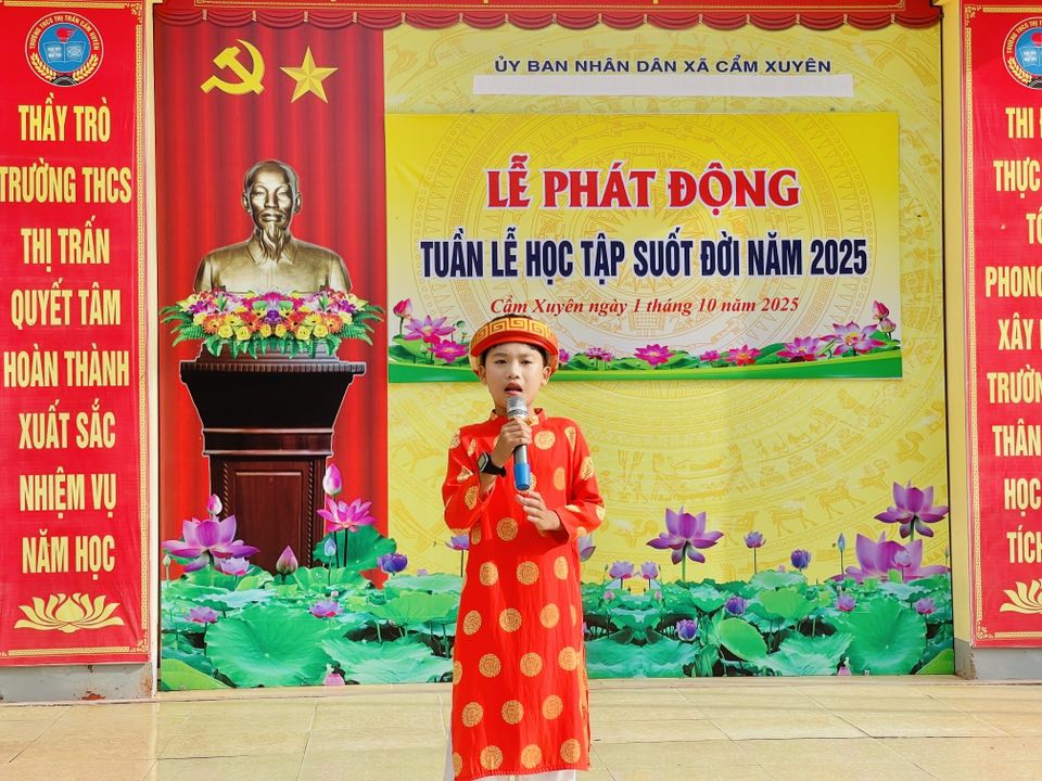 Sáng ngày 01/10/2025, trong không khí trang nghiêm và đầy hứng khởi, UBND xã Cẩm Xuyên phối hợp với Trường THCS Thị trấn Cẩm Xuyên đã tổ chức Lễ phát động Tuần lễ học tập suốt đời năm 2025, với mục tiêu lan tỏa tinh thần học tập đến toàn thể cán bộ, giáo viên, học sinh và nhân dân trên địa bàn.