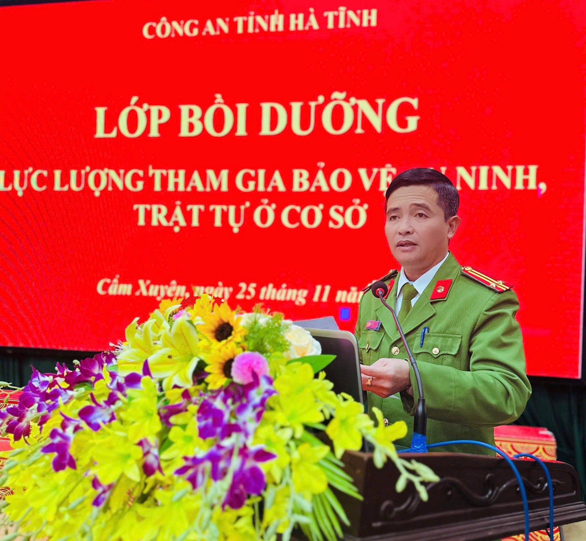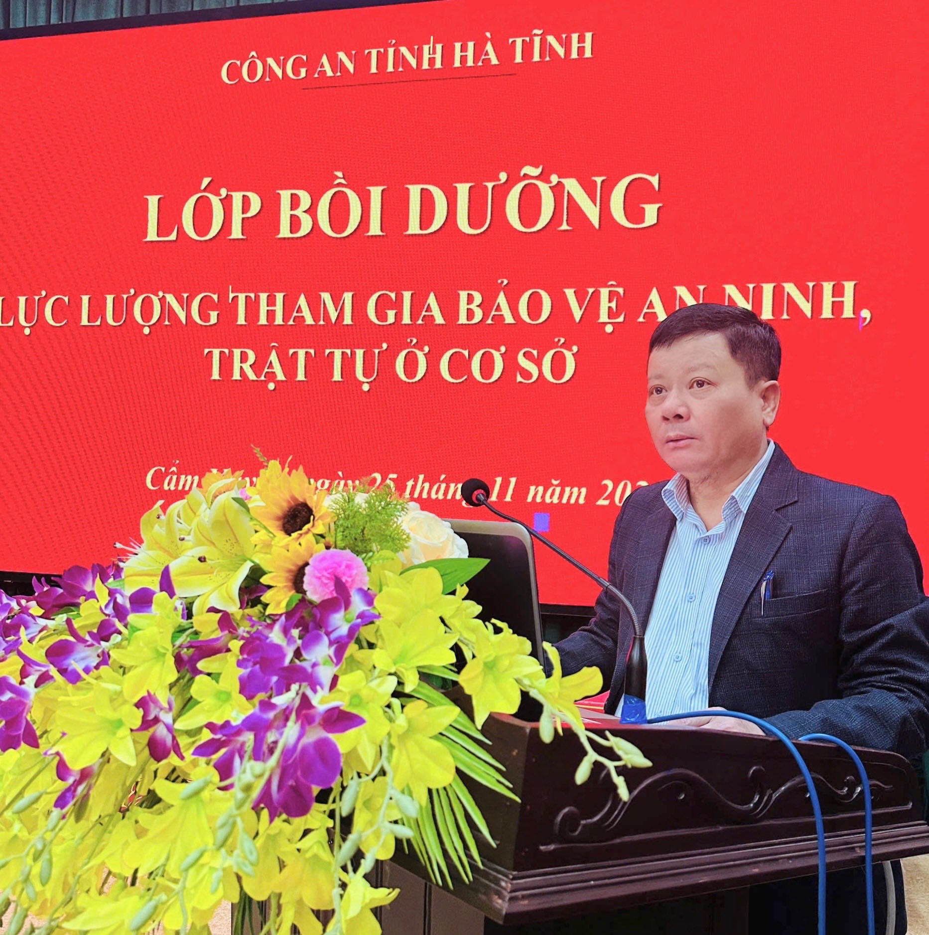 Phát biểu tại buổi lễ, đồng chí Phan Trọng Bình – Phó Bí thư, Chủ tịch UBND xã gửi lời chúc mừng đến các đại biểu và học viên tham dự. Đồng chí nhấn mạnh xã Cẩm Xuyên là đơn vị hành chính mới với địa bàn rộng, dân số đông, phong trào Toàn dân bảo vệ ANTQ thời gian qua đạt nhiều kết quả tích cực, góp phần giữ vững ANTT trên địa bàn. Đồng chí khẳng định 33 Tổ bảo vệ ANTT với 97 thành viên là lực lượng nòng cốt thực hiện các nhiệm vụ đảm bảo trật tự ở cơ sở. Trước yêu cầu ngày càng cao, việc tổ chức lớp bồi dưỡng 6 ngày với các nội dung về pháp luật và 6 chuyên đề nghiệp vụ là cần thiết, giúp lực lượng bảo vệ ANTT nâng cao trình độ, nắm chắc kỹ năng thực tiễn. Đồng chí đề nghị Ban Tổ chức quản lý nghiêm túc; báo cáo viên truyền đạt ngắn gọn, thiết thực; học viên tập trung học tập, chấp hành tốt nội quy và chủ động trao đổi để vận dụng hiệu quả vào công tác thực tế. Đồng chí bày tỏ tin tưởng lớp bồi dưỡng sẽ đạt kết quả cao và chúc các học viên hoàn thành tốt nhiệm vụ.