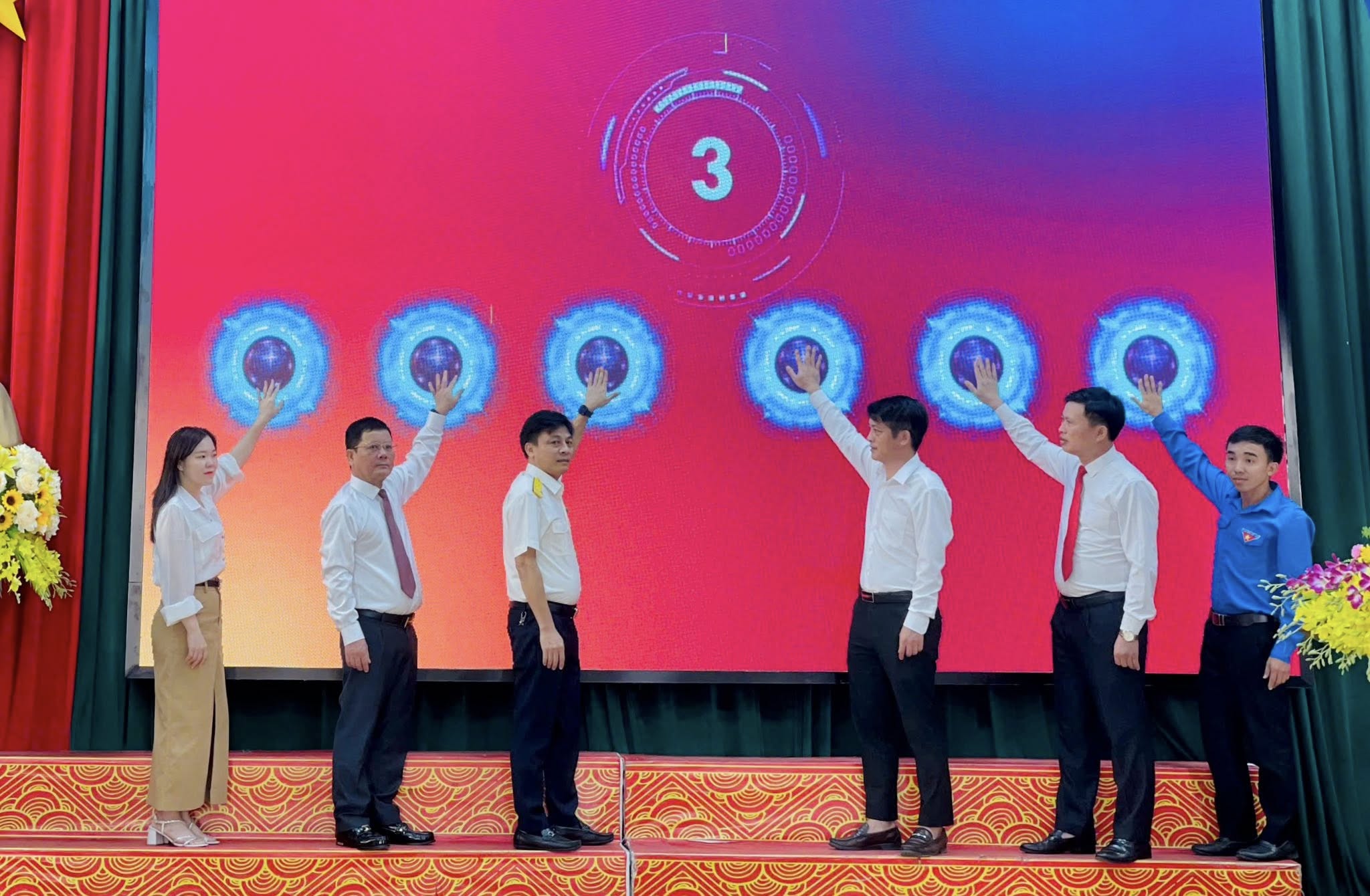 Nghi thức “Chạm tay khởi động” trên màn hình LED được tổ chức trang trọng, tượng trưng cho bước khởi đầu đầy quyết tâm trên hành trình chuyển đổi số toàn diện của xã Cẩm Xuyên