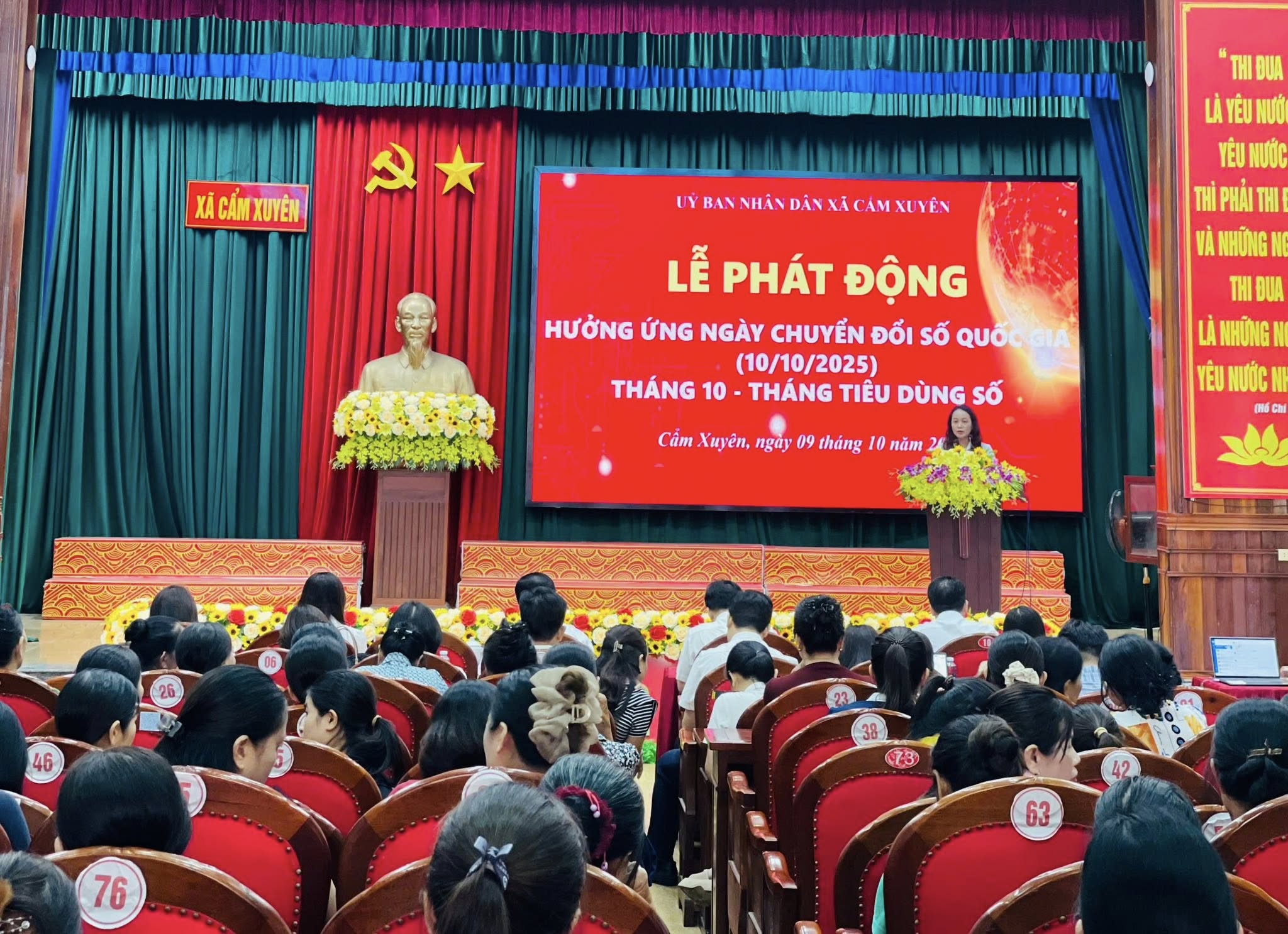 Sáng ngày 09/10/2025, UBND xã Cẩm Xuyên đã tổ chức lễ phát động trọng thể hưởng ứng Ngày Chuyển đổi số Quốc gia 10/10 và Tháng hành động Chuyển đổi số năm 2025, với chủ đề: “Chuyển đổi số: Nhanh hơn – Hiệu quả hơn – Gần dân hơn.”