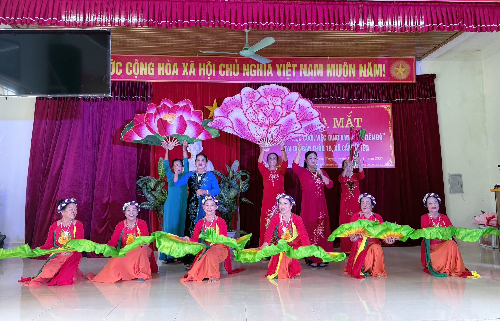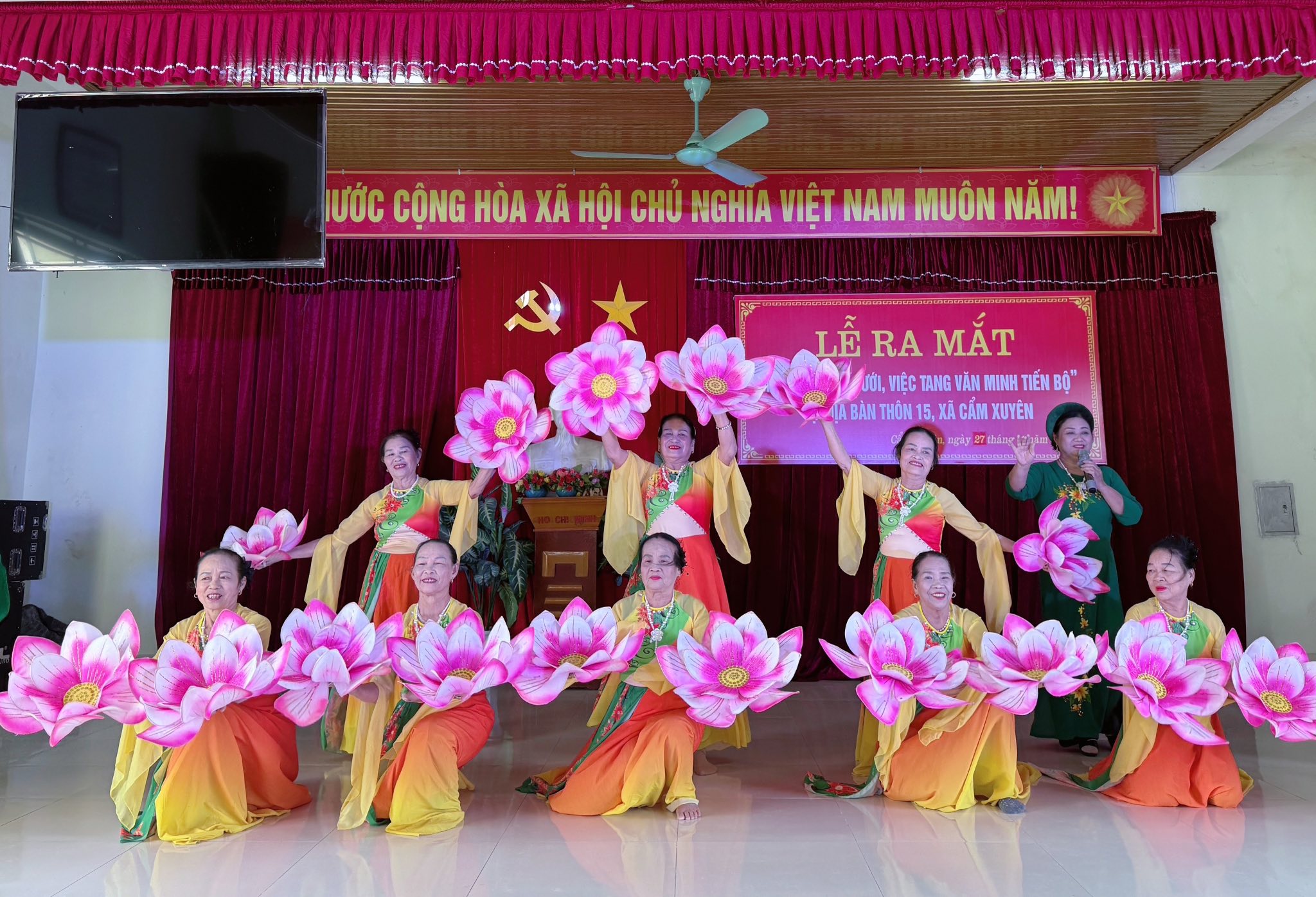 Trước đó, tại buổi lễ ra mắt, các đại biểu và cán bộ, nhân dân thôn 15 đã nghe báo cáo kết quả đánh giá, rà soát thực hiện nếp sống văn minh trong việc cưới, việc tang tại địa bàn thôn 15 trong thời gian qua. Theo đó, tại buổi lễ Công an xã Cẩm Xuyên cũng đã tuyên truyền chuyên đề về công tác đảm bảo ANTT trên địa bàn trong thời gian qua, một số nội dung liên quan và quy định xử lý vi phạm ANTT trong việc cưới, việc tang.