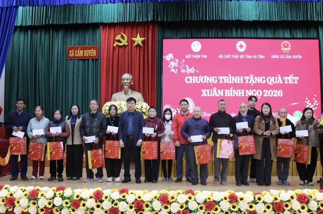 Trước thềm Xuân mới Bính Ngọ 2026, phát huy tinh thần "Tương thân tương ái", “ Lá lành đùm lá rách”. Chiều ngày 23/1/ 2026. Uỷ ban nhân dân xã Cẩm Xuyên, Hội CTĐ - BTXH xã Cẩm Xuyên tỉnh Hà Tĩnh phối hợp với Hội Chữ thập đỏ tỉnh Hà Tĩnh và Quỹ Thiện Tâm tổ chức chương trình tặng quà tết Xuân Bính Ngọ năm 2026 nhằm hỗ trợ, động viên các gia đình có hoàn cảnh khó khăn trên địa bàn.